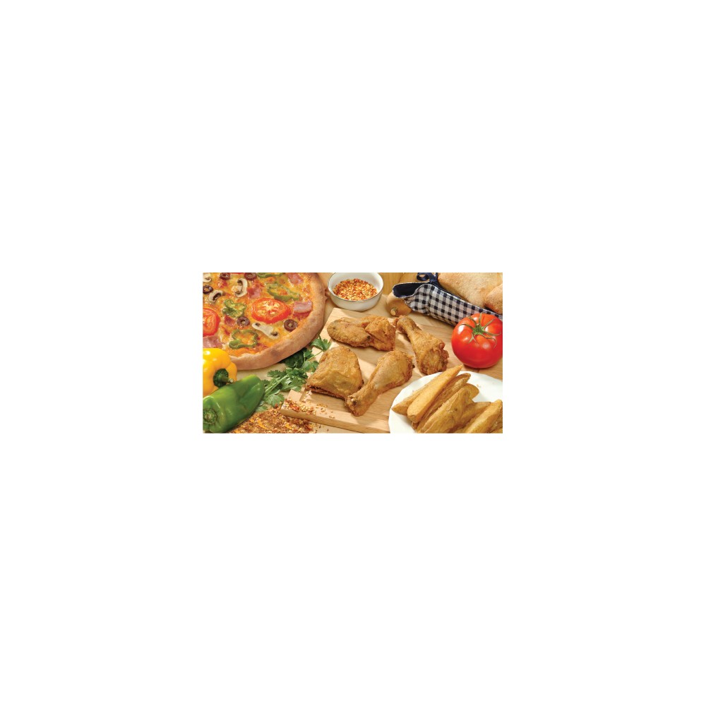 XLarge πίτσα της αρεσκείας σας, 6 κομμάτια κοτόπουλο, 12 φτερούγες, 1 μεγάλη σαλάτα, wedge πατάτες