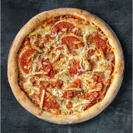Tomato Sauce, Cheese, Halloumi, Bacon, Oregano, Fresh Tomato